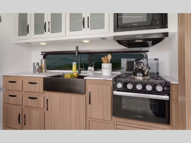 Sleeps 4 Slides 1 Length 31 ft 11 in Ext Height 11 ft 3 in Interior Color Cedar Frost Hitch Weight 825 lbs Dry Weight 6923 lbs Cargo Capacity 825 lbs Fresh Water Capacity 54 gals Grey Water Capacity 76 gals Black Water Capacity 38 gals Tire Size ST225/75R15D Furnace BTU 30000 btu Available Beds Queen Refrigerator Type Double Door 12V Refrigerator Size 10 cu ft Cooktop Burners 3 Number of Awnings 1 LP Tank Capacity 20 lbs Water Heater Type Girard Tankless AC BTU 13500 btu Awning Info 19' Axle Count 2 Number of LP Tanks 2 Shower Type Standard Similar Floorplans
